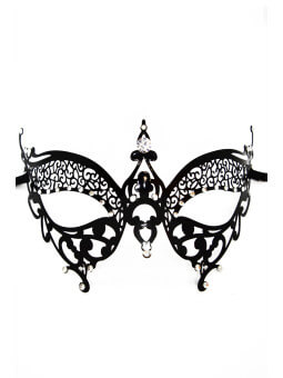 Découvrez l'élégance mystique du masque vénitien Alida noir. En métal et strass scintillants, il sublime vos soirées déguisées ou intimes. Attachez avec ses liens. Suspendu entre fantasme et sophistication.